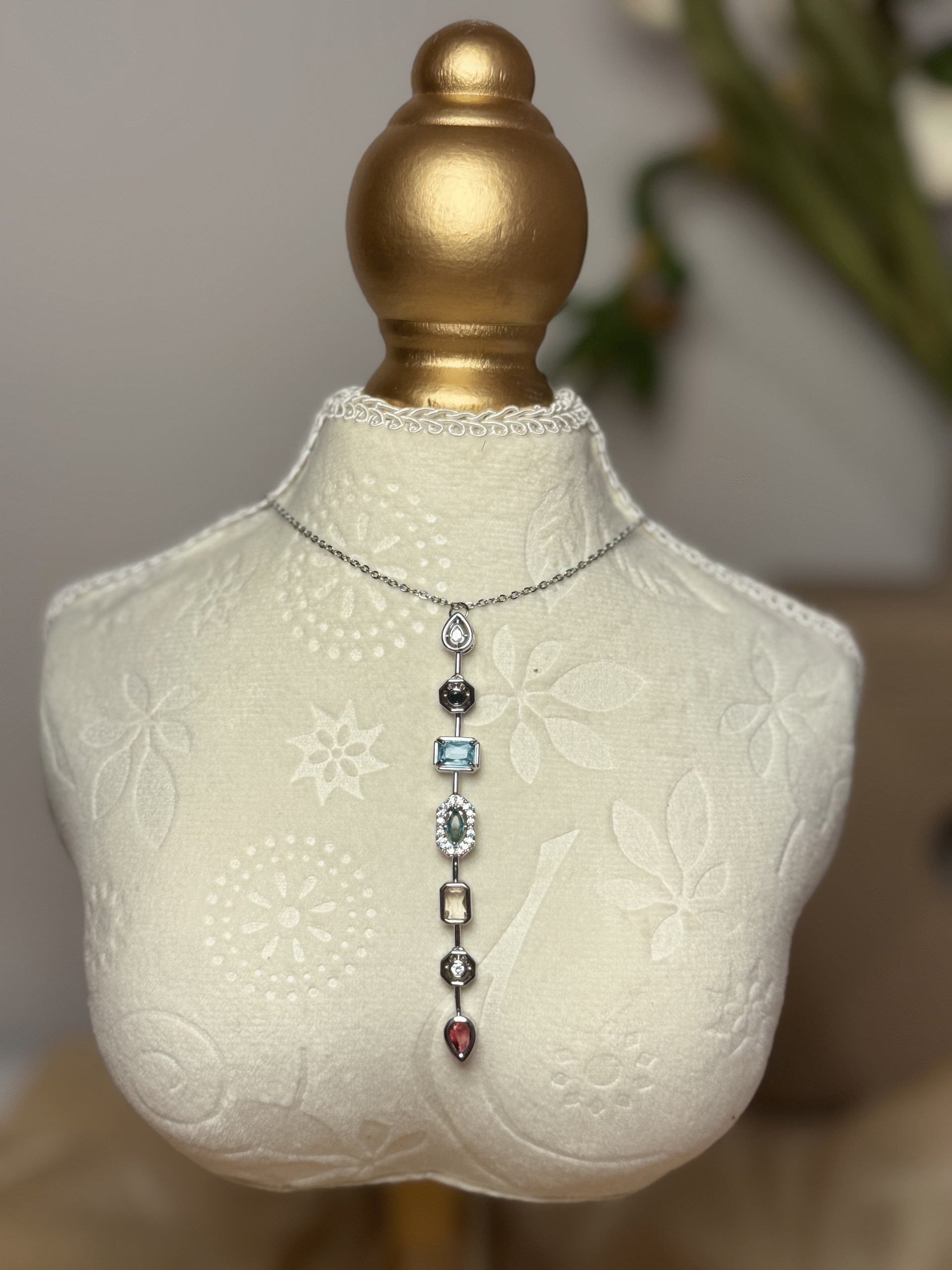 YEDİ TAŞ DAMLA SİLVER Y KOLYE